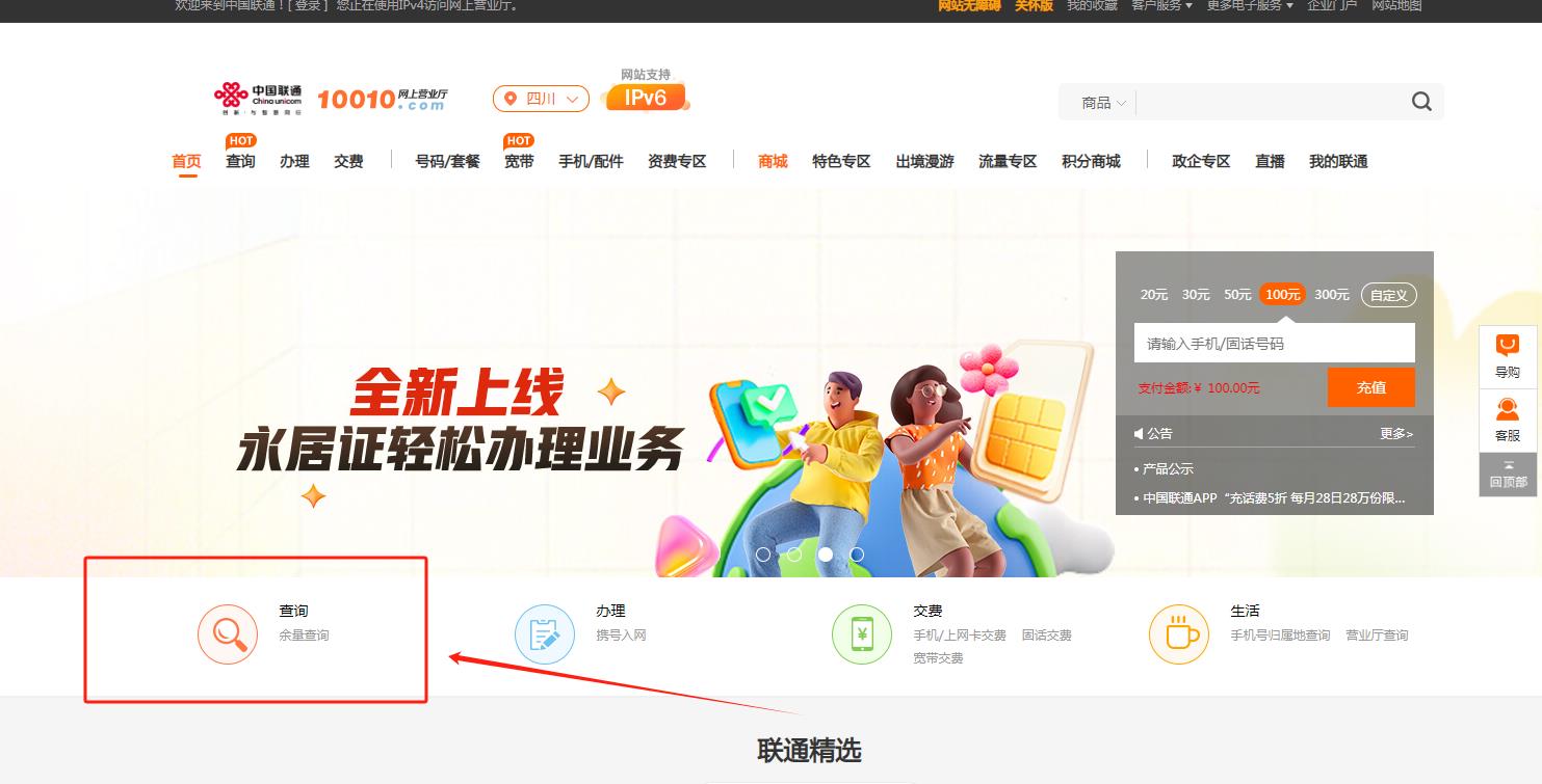 如果方便上网的话,可以在网页上输入“中国联通”,然后进入官网www.10010.com,输入手机号和服务密码或者是短信验证码,进入到联通网上营业厅以后,点击“话费查询”就可查到话费,点击左侧的套餐使用查询即可看到上网套餐剩余量。