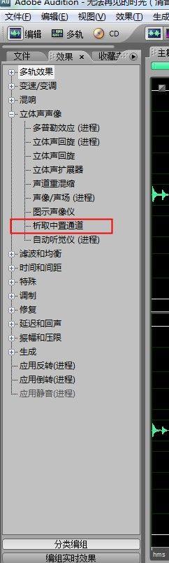 第五步:点击”效果“选项卡,然后点击”立体声声像“——析取中置通道。