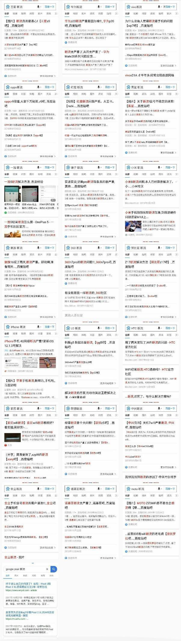 笔者猜测,应该是MT6795所属SOC对于信号模块的匹配有问题或者是数据通道会不稳定,虽然随后的helio X10系列也被爆出,但是厂家并没有修复召回且属于小部分,所以笔者觉得是后遗症,就像下图拿着百度搜索,手机品牌+手机断流然后全是负面新闻一样。