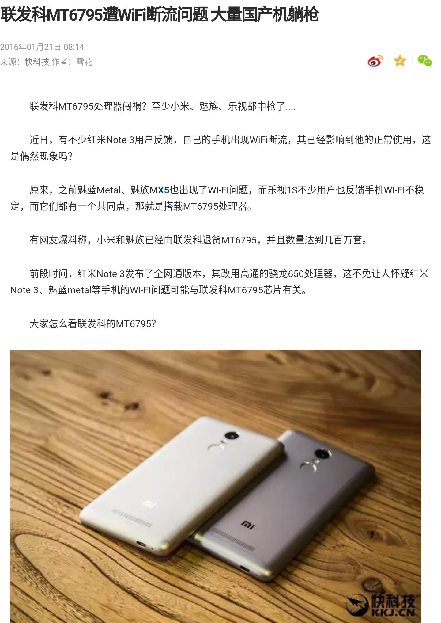 这是当时的新闻,爆雷后厂家纷纷改换处理器,所以可以断定,技术层面上肯定是联发科的这个MT6795出现问题了。