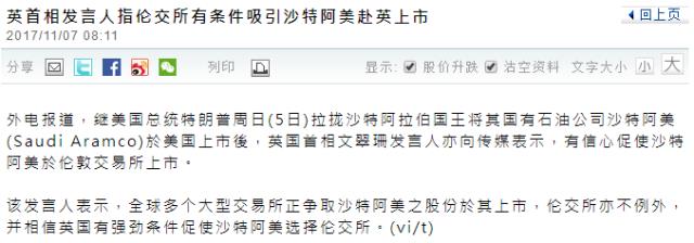 既然美国的优势不复存在,其他国家也想来搏一搏。11月5日,英国首相文翠珊发言人亦向传媒表示,有信心促使沙特阿美於伦敦交易所上市。