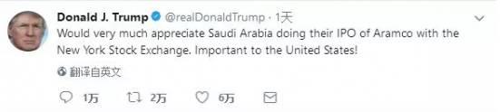 正是趋于这种担心,在沙特反腐刮起的当晚,特朗普当天立即给沙特的老国王打了个电话,然后又发了一个推文,大致内容是:“十分欢迎沙特阿美来纽约上市,这对美国将非常重要!”
