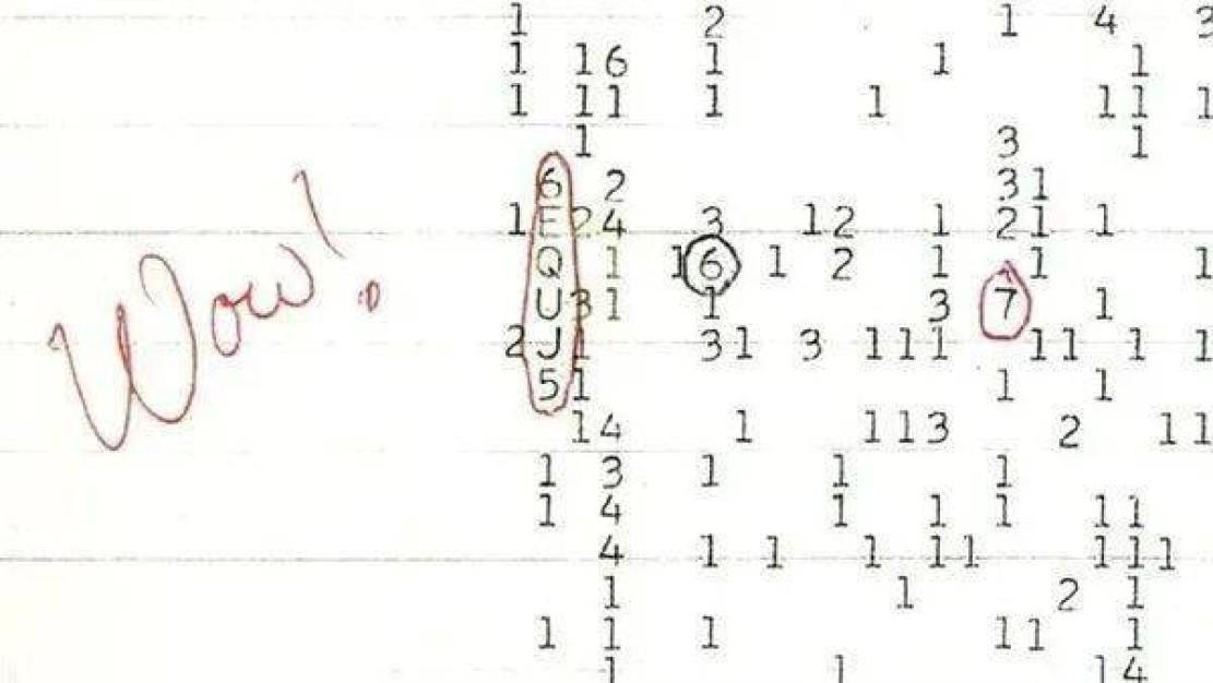 那是1977年8月15日,美国俄亥俄州立大学的杰瑞·埃曼博士,在翻查已经处理过的一些来自宇宙无线电信号时,突然发现一张机打数据中存在一段异常稳定的连续窄带信号,这种信号排除了人类等干扰因素,具有明显的地外文明特征。于是埃曼博士兴奋若狂,在数据纸上不由自主地写下“WOW”三个红色大字母,并打了个惊叹号。