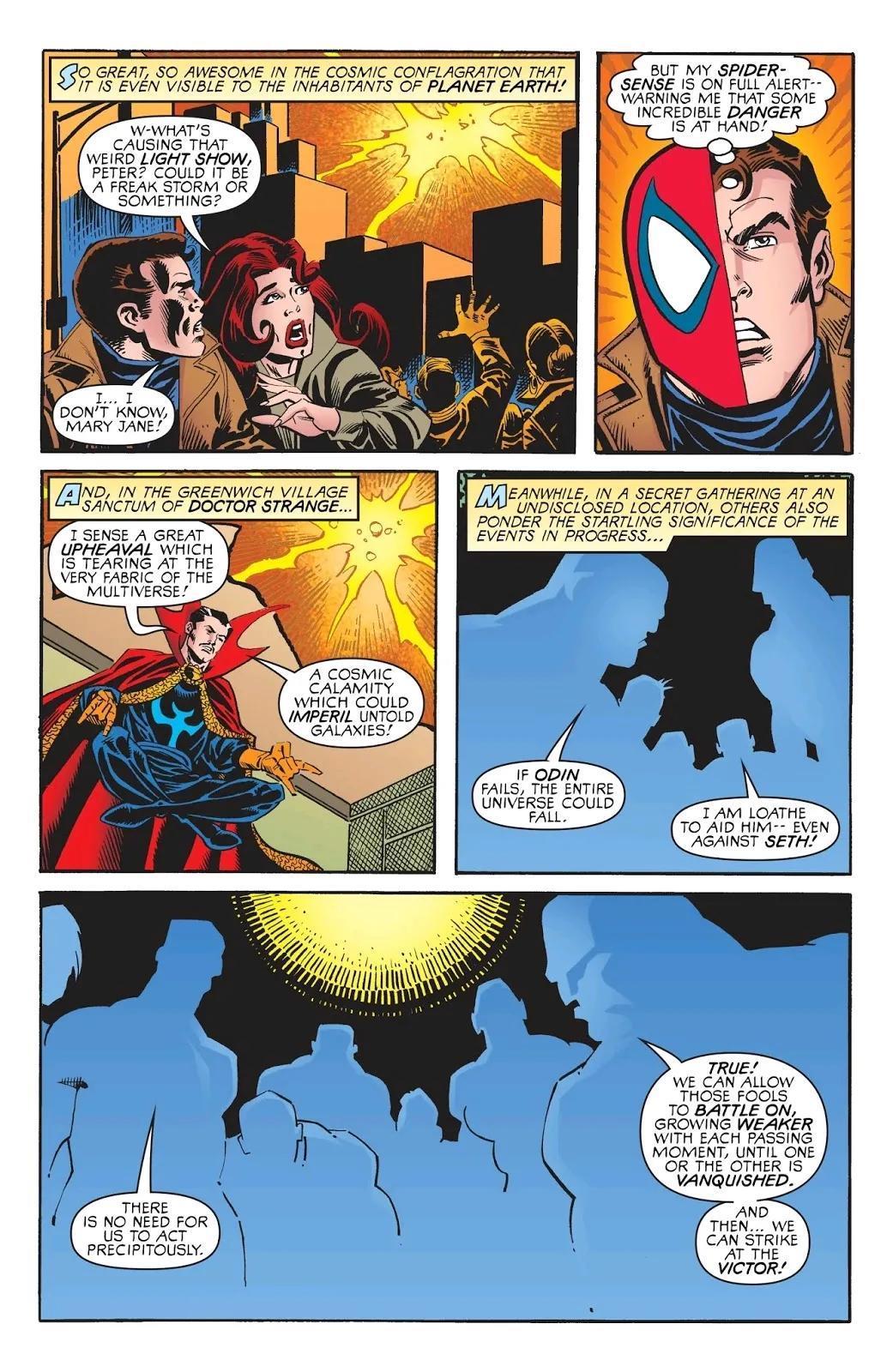 奇异博士指出奥丁和赛斯的战争撕裂了多元宇宙的结构,这是一场可能危及无数星系的宇宙灾难。