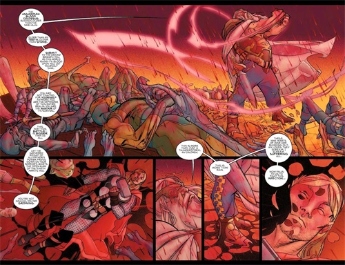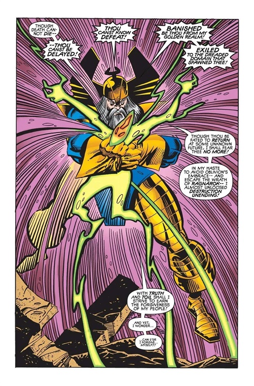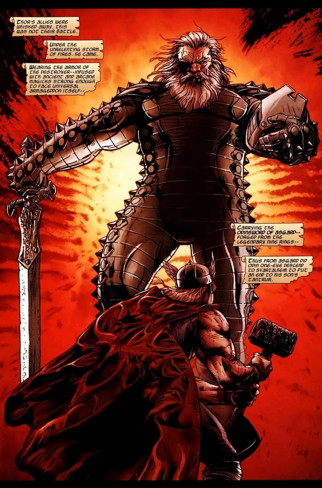 当第四队天神到来时,奥丁统领所有阿斯加德人的灵魂进入毁灭者盔甲来迎击敌人。