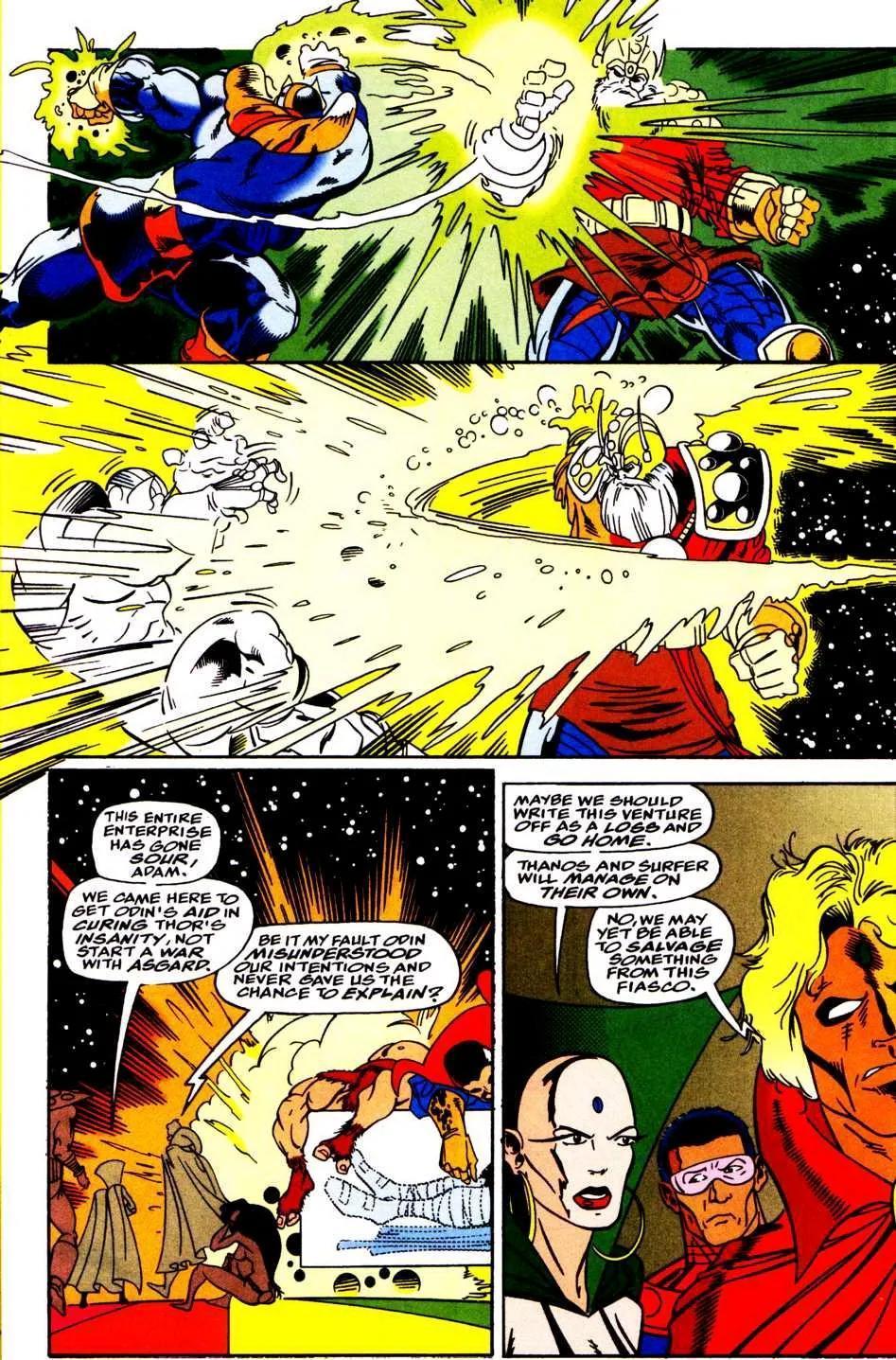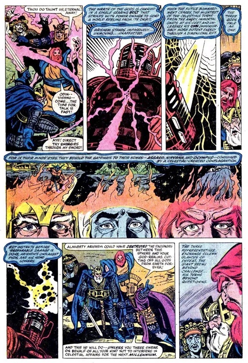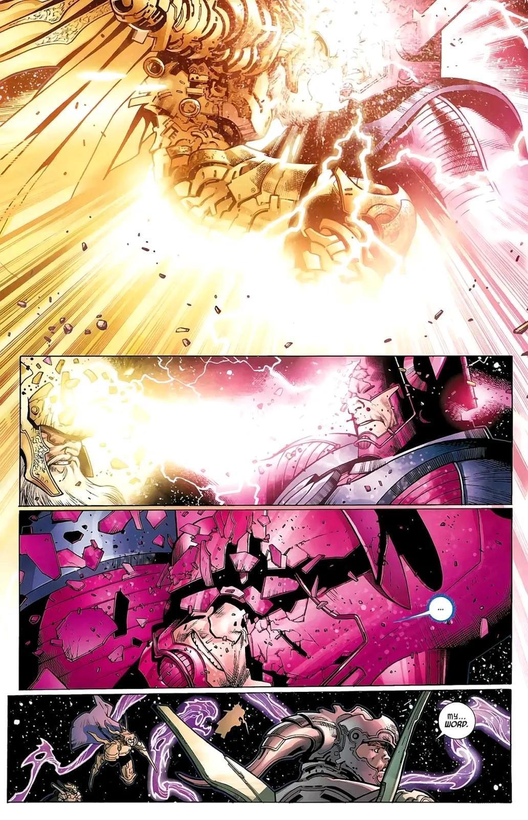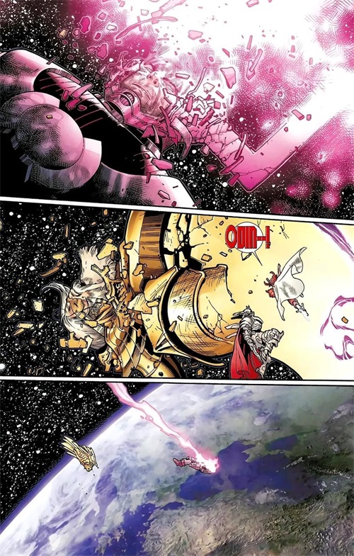 面对第三队天神,奥丁与另外两位天父向天神Arishem发起同时攻击,力量之强足以把星球送出运行轨道。
