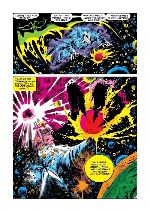奥丁与无限在宇宙边际战斗,过程中崩塌了多颗星球,毁灭了多个银河系。