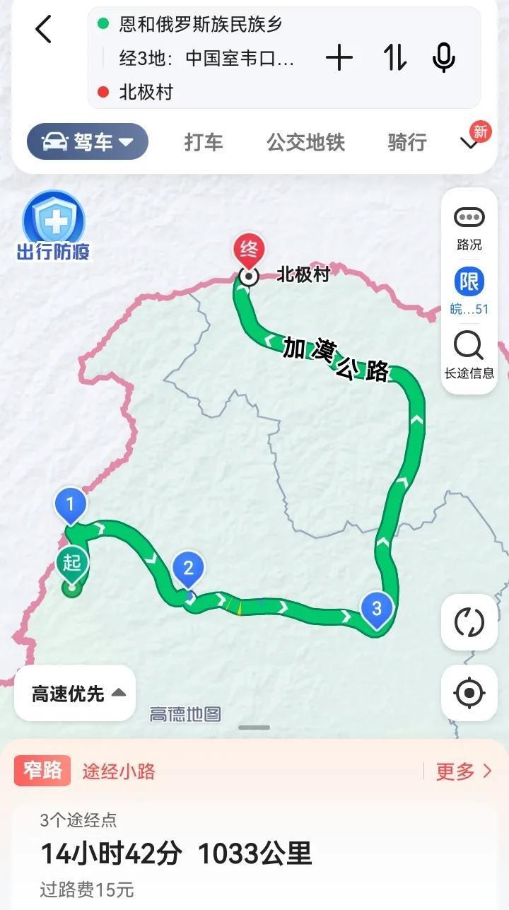 恩和-室韦-根河-加格达奇-北极村行程路线。