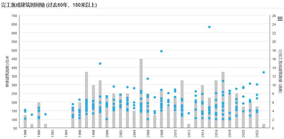 地区排名:亚洲已建成的150米(或更高)建筑中排名第3