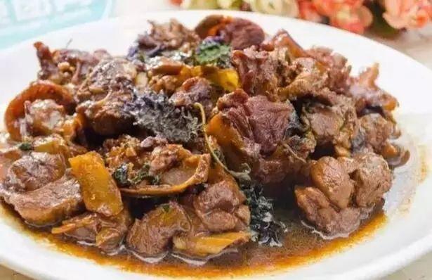 3、调味后,加入适量水将鸭块焖熟20分钟,最后勾芡便可上桌食用。