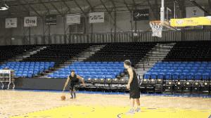 当你看到补防队员跑过来的时候,用一记抛投完成进攻。换言之,抛投的最佳出手时机,是第一名防守队员被你晃开,补防球员还来不及上前的时候。