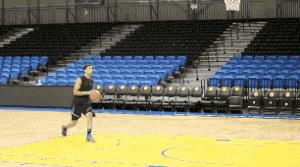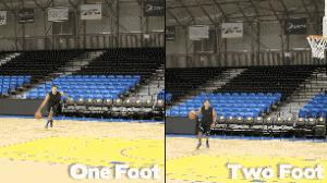 单脚起跳跟普通上篮脚步是一样的,只是篮离篮筐更远。