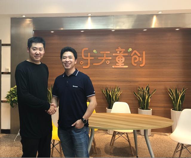 (图为鲍云与小码精灵ceo许华彬)