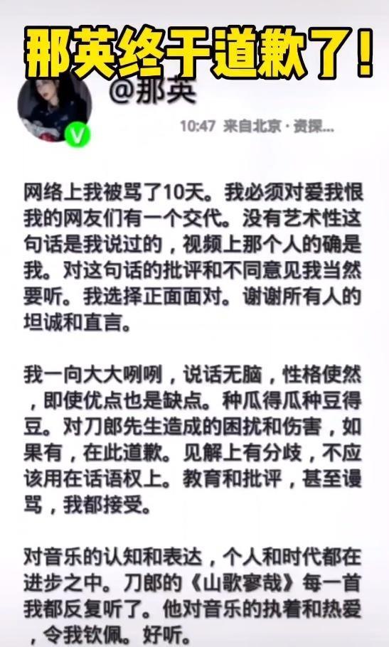 那英道歉后又删除,网友对并不满意