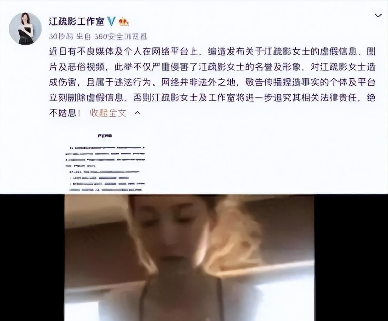 当这段视频开始在各个平台上疯传时,江疏影的名字也随之成为被搜索次数最多的关键词之一。众多网友在看到视频后,几乎第一时间联想到了江疏影,因为视频中女主角的外貌、神态与她十分相似。随即,许多人开始质疑这是否意味着江疏影有染于此。面对如此质疑,江疏影通过其社交媒体账号发布了声明,否认自己与该视频有任何关联,并强调已经向执法机关报案,希望通过法律手段清洗自己的名誉,并追究造谣者的责任。