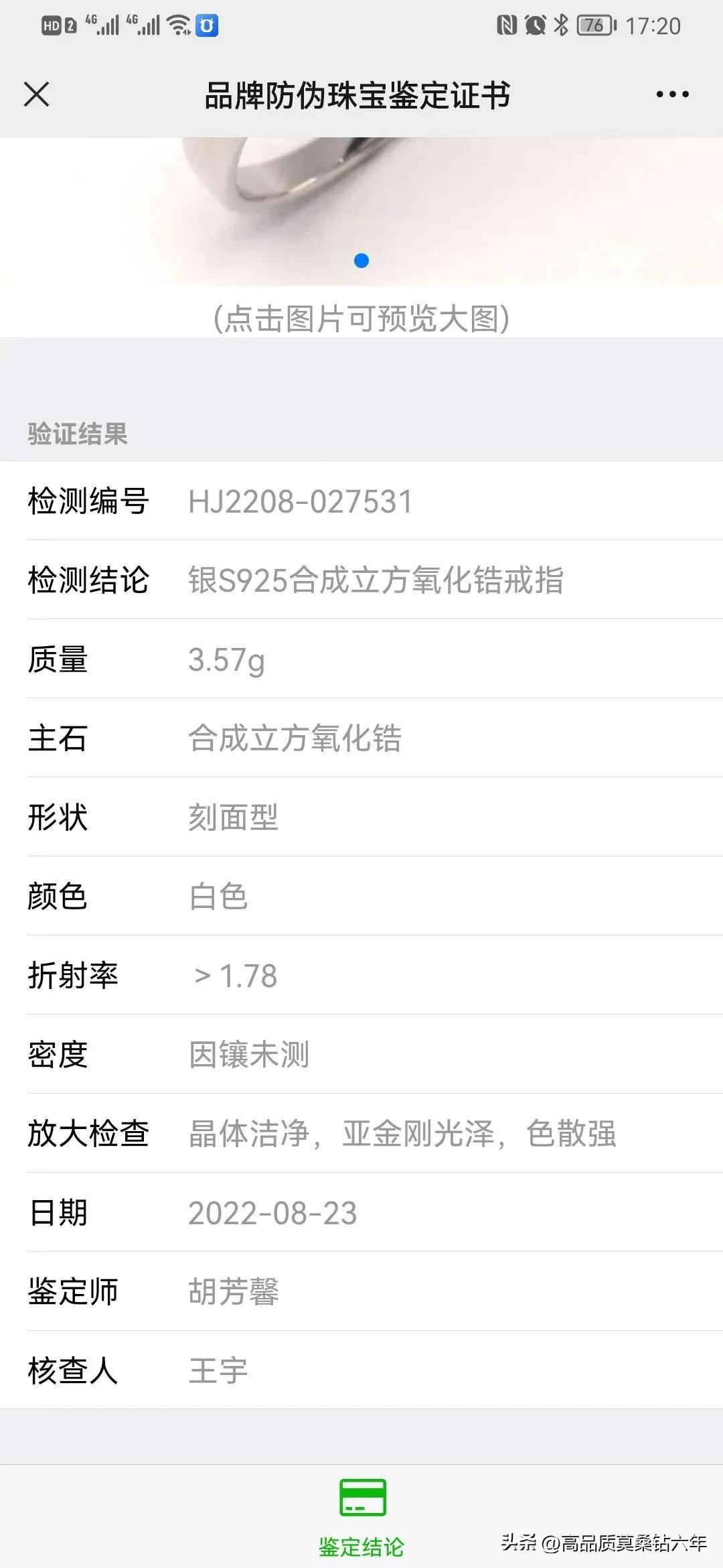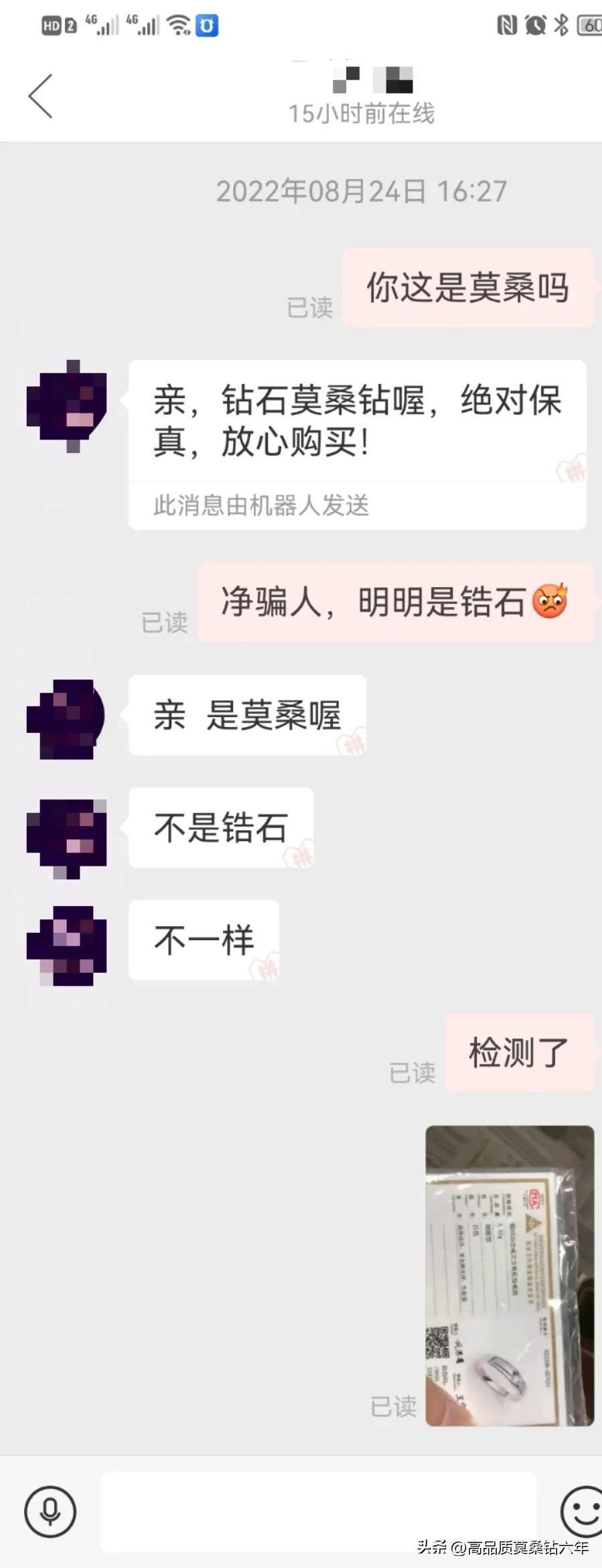 我做莫桑钻六七年了,不仅自身做莫桑钻经验丰富,而且我还在某宝某多上买莫桑钻首饰买来测试过,不仅是用测钻笔测试,还拿着去贵金属监测站出贵金属鉴定证书。