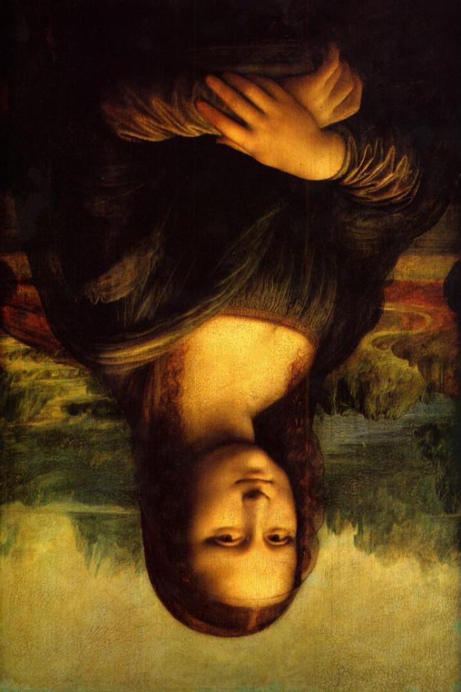 最诡异的是,当把《蒙娜丽莎》倒置过来再看时,她的微笑已经荡然无存,反而有一种“当你凝视深渊时,深渊也在凝视你”的恐怖感觉。