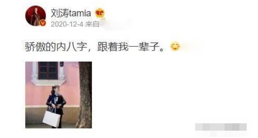 不知是深感自己的内八脚很难纠正,还是真能接受不完美的自己,刘涛倒是在社交平台上大方回应对她腿的质疑,还配图配文表示: