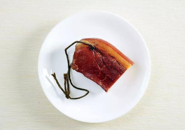 腊肉:熏好的腊肉,表里一致,煮熟切成片,透明发亮,色泽鲜艳,黄里透红。