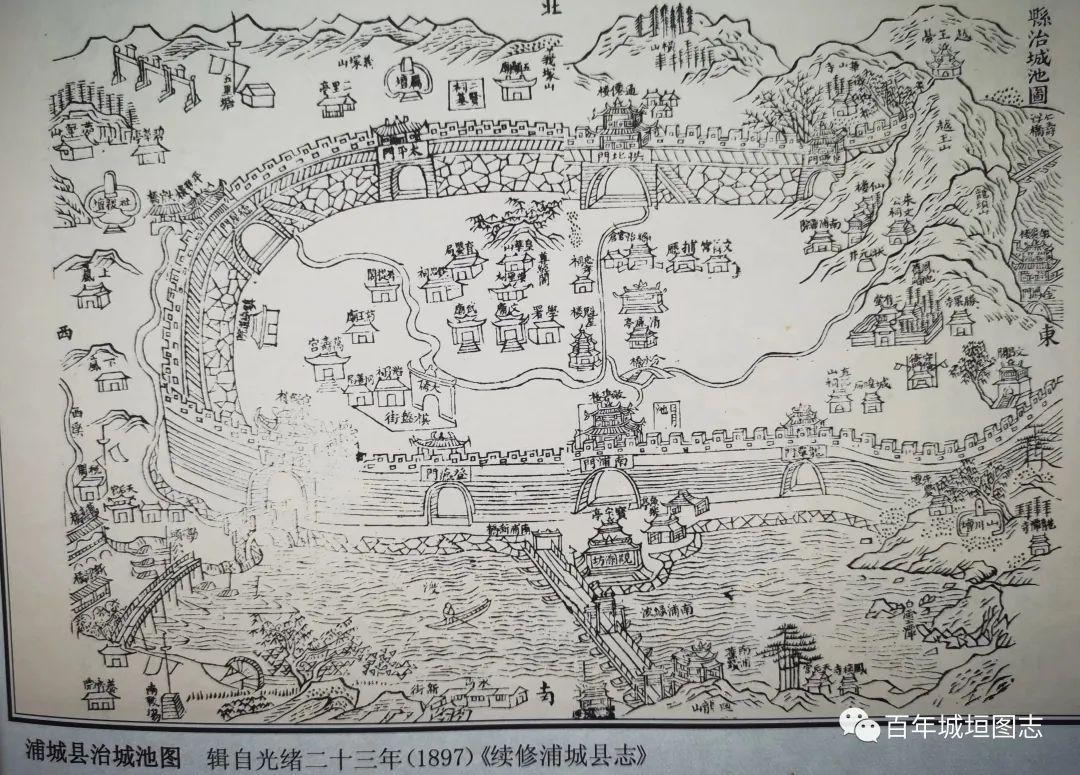 中国省别全志里的浦城县城地图
