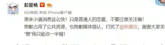 后来,彭昱畅本人立马现身澄清绯闻,虽然直言自己确实身处恋爱事情,但是女主并非的大家所说的张婧仪,而是另有其人,这样的说法,无疑让外界谣言不攻自破。