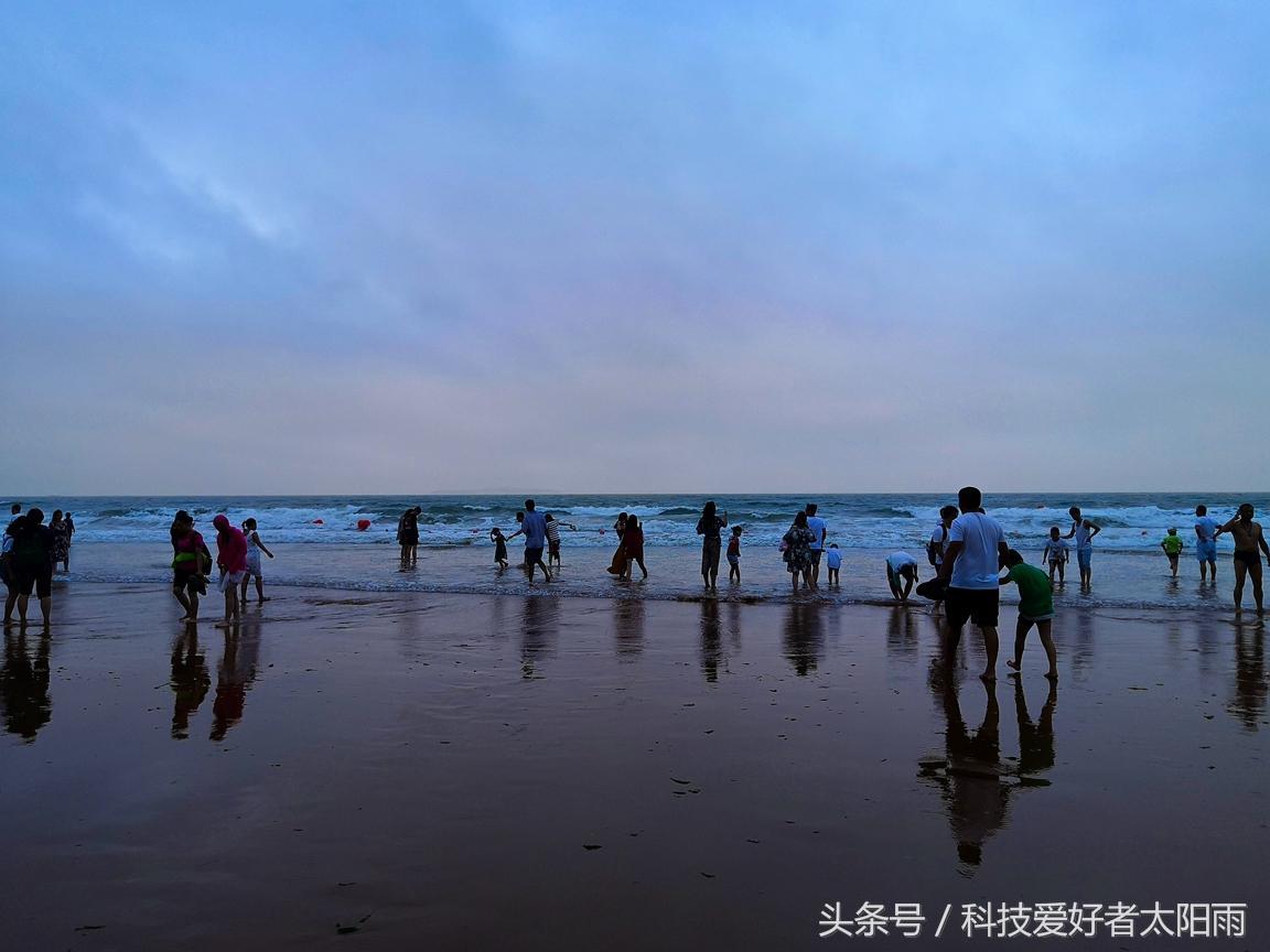 11日傍晚沙滩终于开放,沙滩之上游人、海藻如织,清理海藻的车辆正在紧张的忙碌着。沙子确实很细腻,脚感非常好!傍晚时分的海浪夹杂着海藻依然挺大,但这些丝毫不影响游客们的兴致。到海里游泳的依然大有人在,安全重要,不会游泳的还是安稳的在海边趟趟海水、拍拍照,也算这次没白来,避危而止吧!