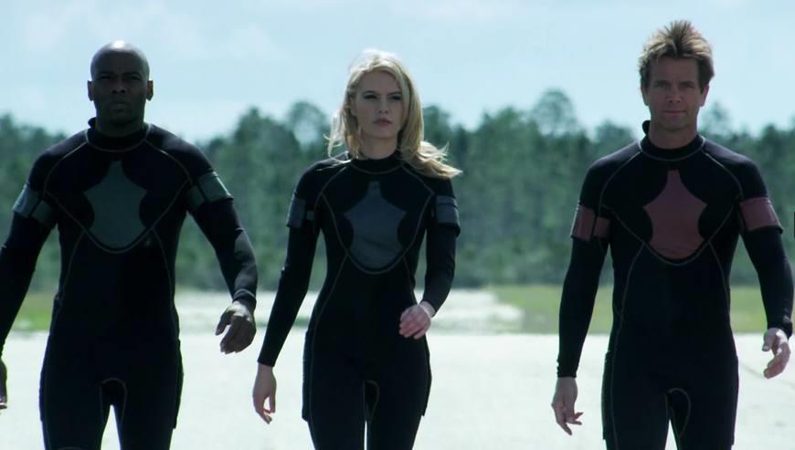 虽然说《环太平洋》的衣服看着也不是什么高科技,但是《环大西洋》你们穿的衣服确定不是制衣工厂批发出来的吗?上衣的几个logo意味着你们是同一个战队的?