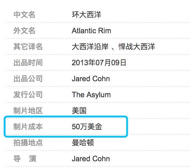 其实我们看制作成本就知道了,《环大西洋》是《环太平洋》制作成本的380分之1。