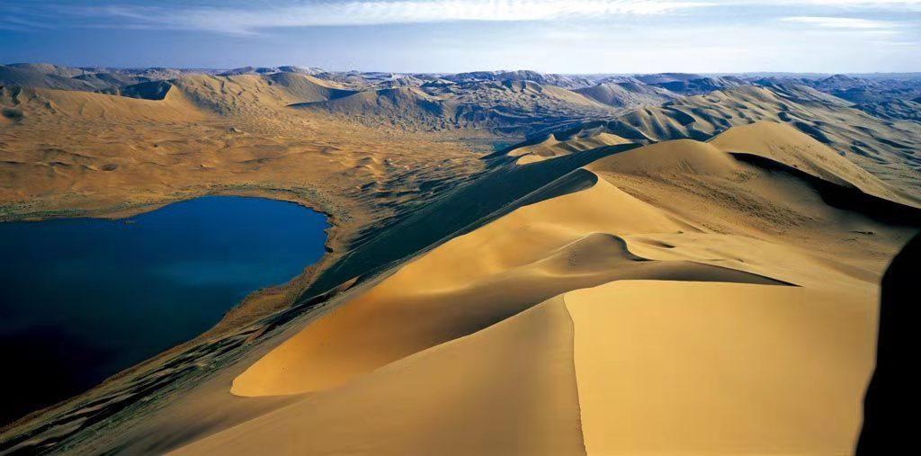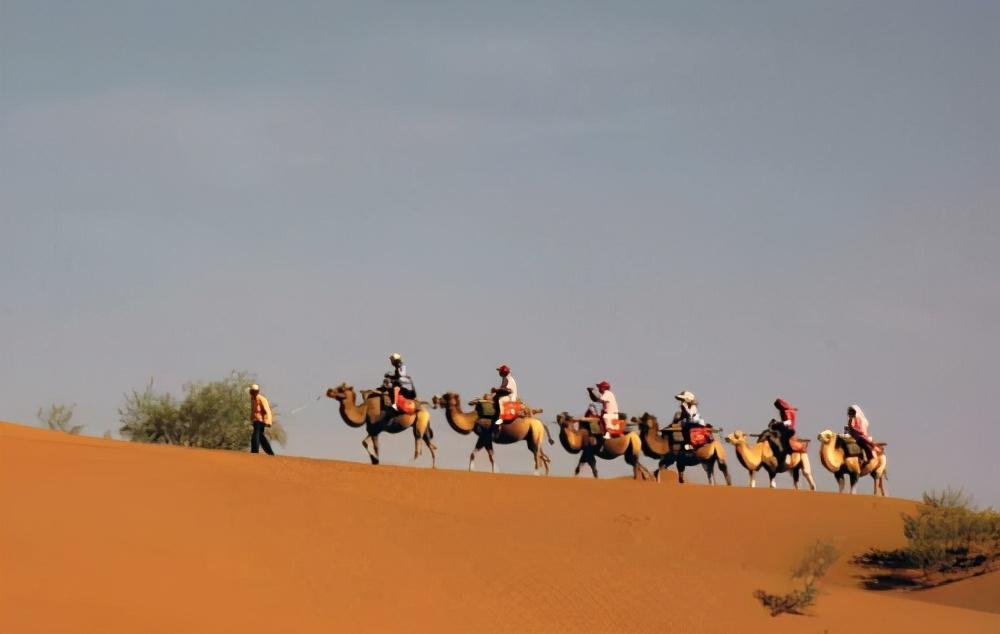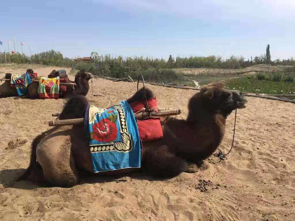 在形同中国地形图的旅游池中畅游,一种“会当水击三千里”的豪情涌在心头。戏水后在池畔的沙浴场绵沙上或仰天而卧,或滑沙而下,那是再惬意不过的事了。在跑马赛驼场上,可以跨上矫健神勇的骏马,体验昔日“凉州大马走遍天下”的况味,还可以骑上“沙漠之舟”的骆驼,在茫茫沙海中跋涉。