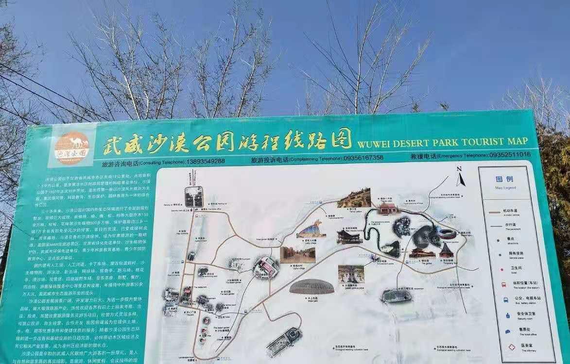 武威沙漠公园4A级景区 ,位于甘肃武威城东22公里处的腾格里沙漠边缘,始建于1986年,占地1.2万亩,是一座融大漠风光、草原风情、园林雅趣为一体的游览胜地,被誉为“沙海第一园”。