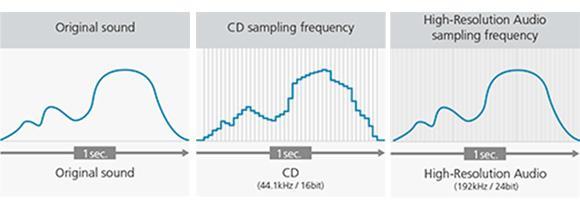 普通音乐、CD音源和Hi-Res音源的频率曲线比较