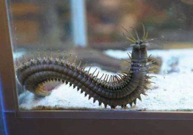 这种虫子平均体长1米,最长可达3米。不过平时看到的经常是它只露出的头部(没有眼睛和大脑)。它擅长伏击,将自己的身子埋在海底的沙子中,守株待兔。根据科学家的研究,博比特虫的捕食器十分复杂,有5个触角,一对大颚和口启组成,被称为“咽头”。它用5个触角探测环境,每当触须被碰到,博比特虫就像鱼雷一样冲出洞穴,并在瞬间将整个口腔翻出,暴露出像剪子一样的上下颚,攻击过程猛而快,小鱼一下被咬成两半,然后,猎物会被拖到沙子下面,防止逃脱。对猎物来说,过程倒是很痛快。