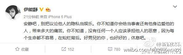各路明星纷纷发文称:不敢相信。我们在这也衷心祝愿逝者安息,家人坚强,也希望每个人善待自己的言行,给逝者一片安静的乐土,也不要给其父母朋友莫须有的压力。