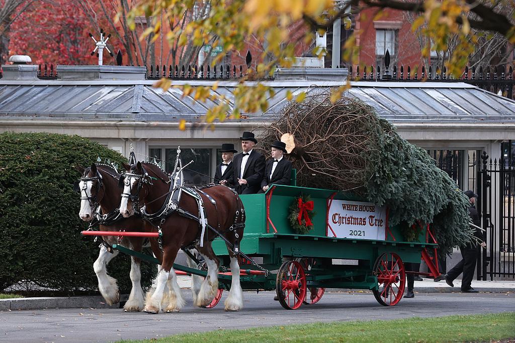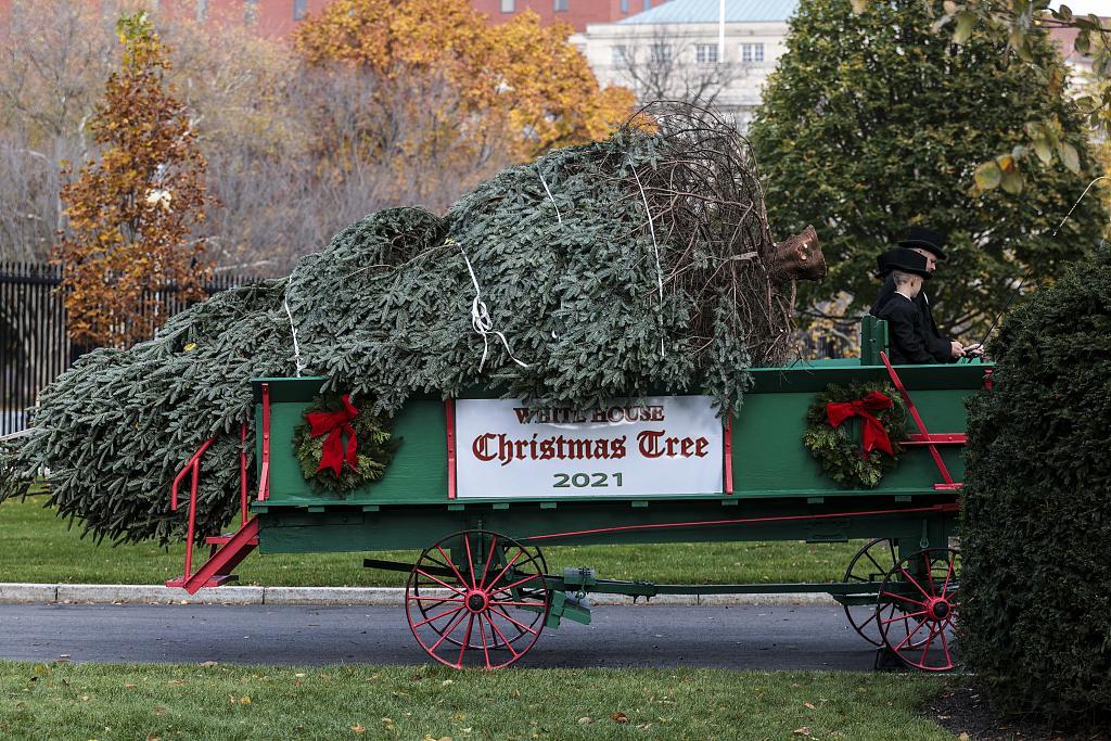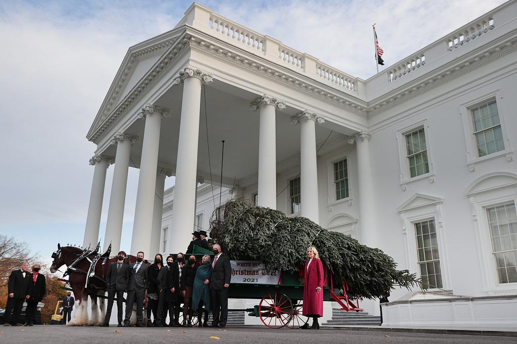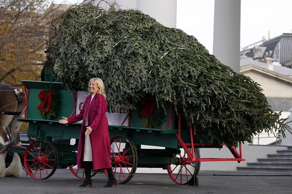 2021年11月29日讯,美国第一夫人吉尔·拜登近日在白宫接收了2021年白宫圣诞树,美媒称,今年在白宫点亮国家圣诞树的节庆仪式将花费十多万美元,这笔钱来自于纳税人的税款。