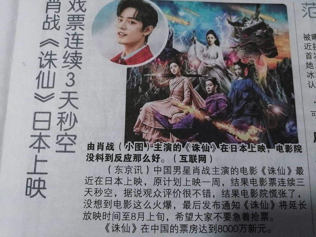 比如前段时间,诛仙在日本上映,由于是海外电影,一开始定位是小馆电影,只上映7天。后来由于太过火爆,片方多次加馆加场,依然售罄。