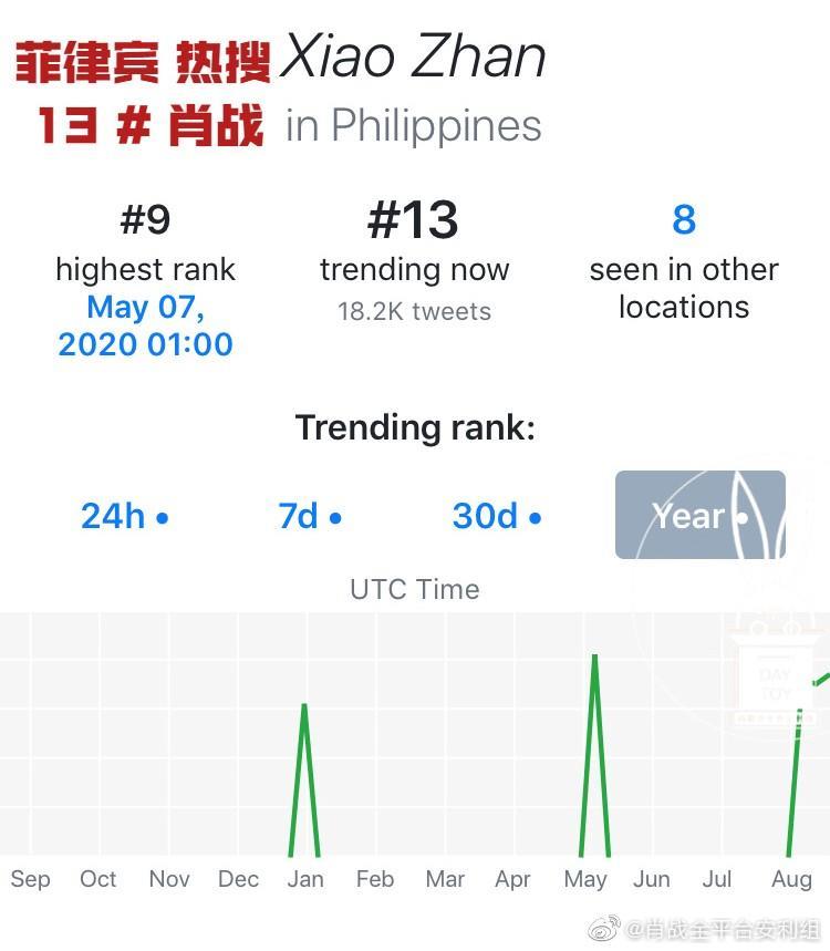 #肖战直播#相关话题登上了推特多国实时热搜,涵盖了全球热搜、墨西哥、泰国、新加坡、韩国、菲律宾、印度尼西亚等地热搜榜。