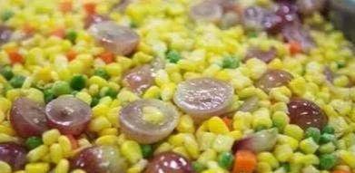 没错,你看到的就是玉米炒葡萄,玉米炒火腿倒是吃过,味道是不错的,就是不知道玉米炒葡萄是什么味道,看图片感觉味道是不错的,并没有像西瓜炒香蕉一样的,能想出玉米炒葡萄这道黑暗料理也是佩服食堂阿姨的,听说是受到学生们的欢迎的。