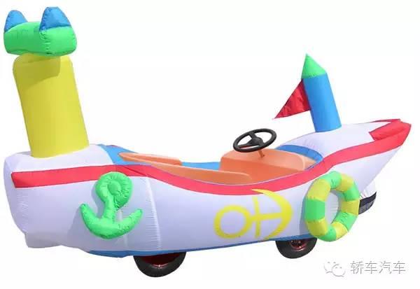 充气电瓶车又称儿童充气电瓶车,它分为双人充气电瓶车,彩灯充气电瓶车和单人充气电瓶车三种。充气电瓶车早期源自日本,但因气模为针车缝制而成,所以必须额外用电池及风机对其充气,即使没游客时也须耗电充气,另上气模寿命大约3个月,所以当时此产品只作为短暂表演性营业,要正常经营根本无法回收成本,因当时使用高成本残废车辆及针车的气模为不成熟有缺陷的商品,所以特别针对此商品进行一次大更动,研制出了一种新型的气模产品——充气电瓶车。