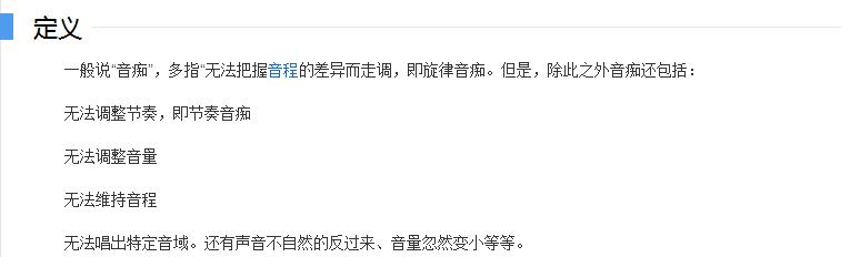 运动性音痴指本人虽然耳朵可以很明确分辨正确的音程、音阶,但是由于咽喉运动、肌肉紧张、呼吸紊乱等原因而出现音程错误的症状。