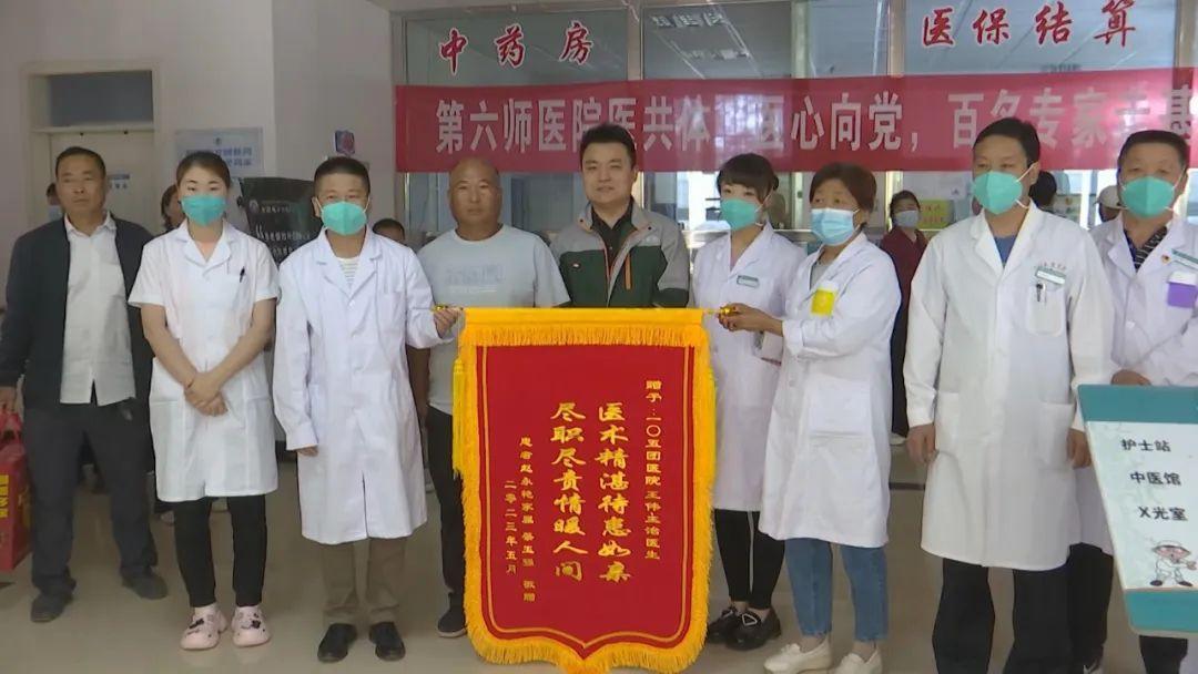 5月30日,一位患者家属将写着“医术精湛待患如亲 尽职尽责情暖人间”的锦旗送到第六师医院一〇五团分院王伟医生手里,对王医生精湛的技术和优质的服务表达感谢。