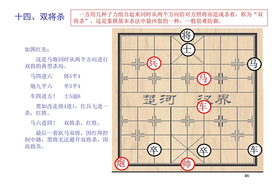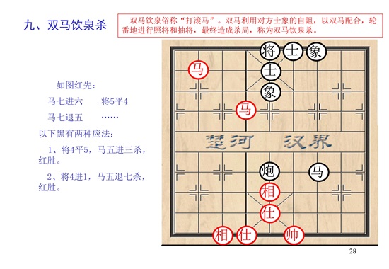 双马必胜士象全是双马饮泉杀法的具体运用;