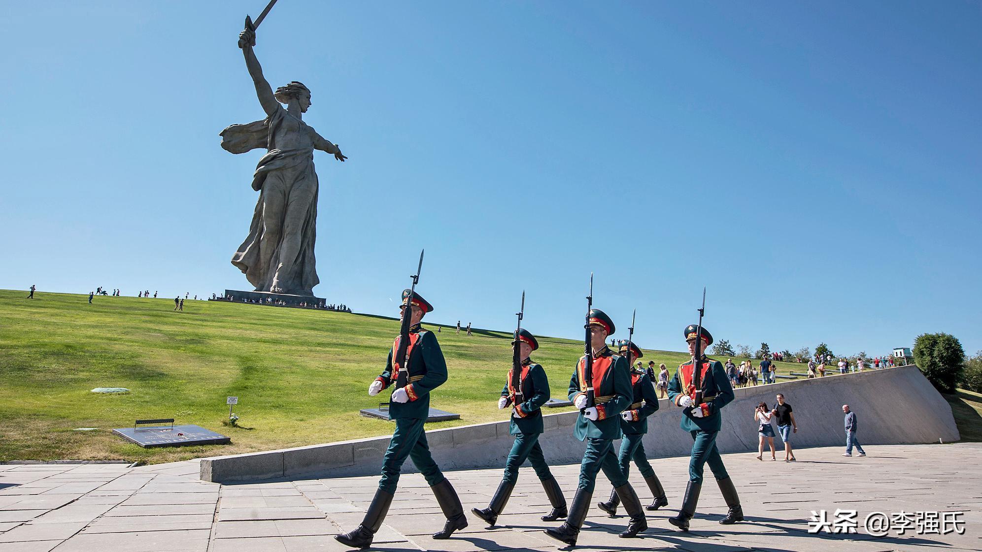 马马耶夫的名字是来源于蒙古军队,是一处古代鞑靼人坟墓形成的小山,现在成为了带有反法西斯战争意义的山丘。这里是斯大林格勒保卫战中的主战场。山岗上耸立着一尊象征“祖国——母亲”的高大的塑像,高85米。连底座重达800吨。她面向波涛滚滚的伏尔加河,右手执利剑,左手指向柏林,她在号召自己的英雄儿女冲锋陷阵,消灭敌人。
