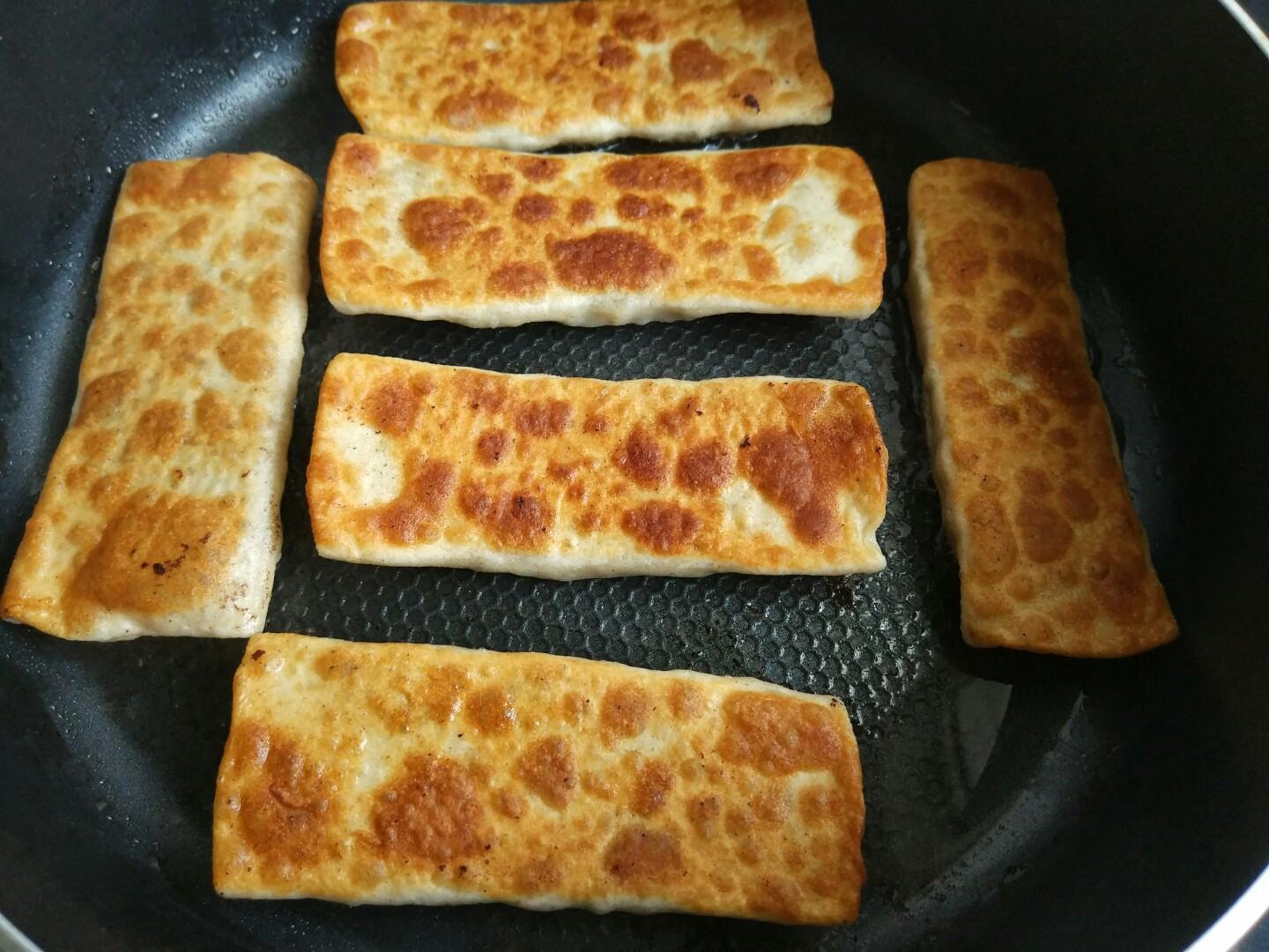 9. 将两面煎得金黄就熟了。