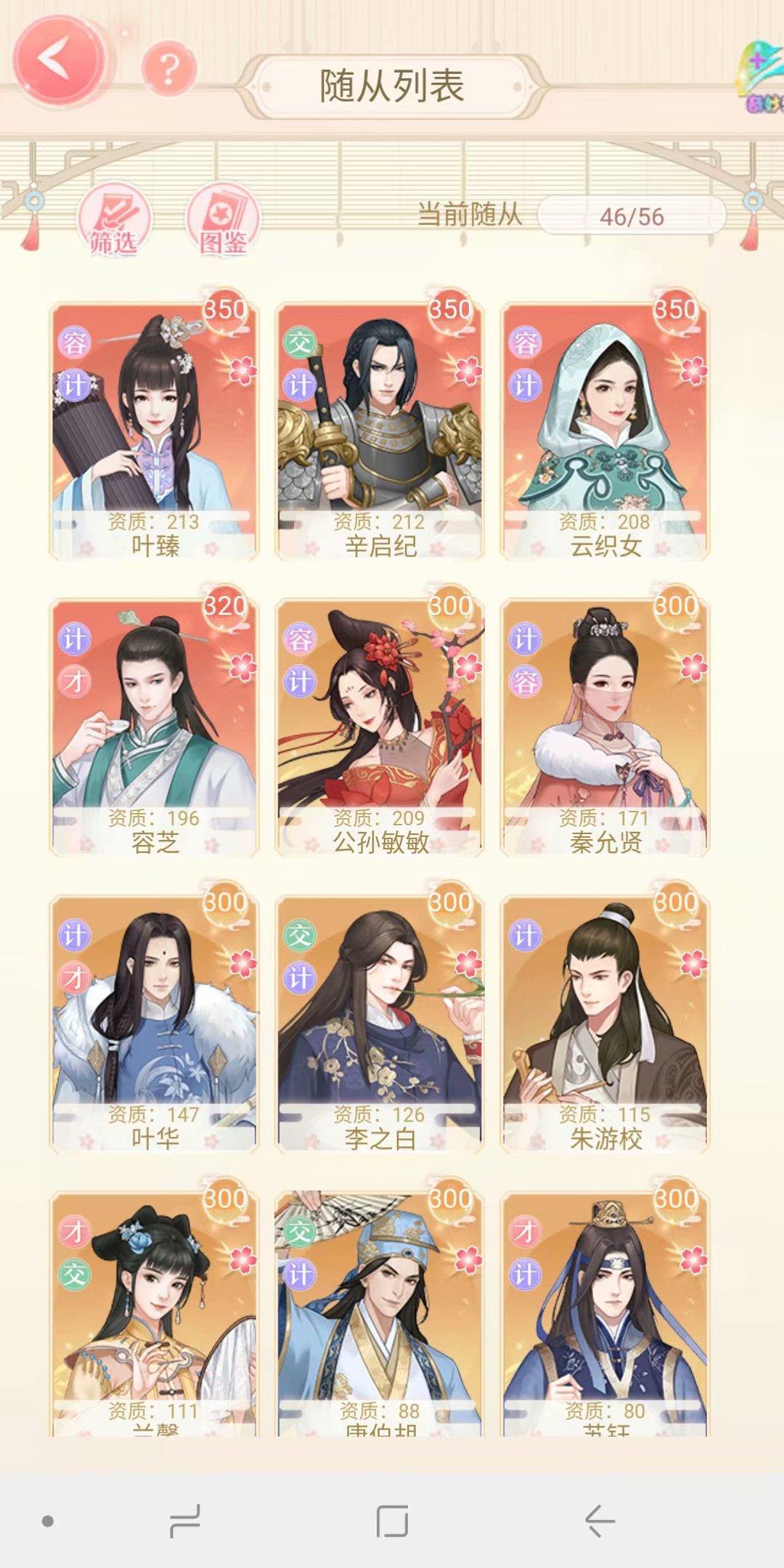 我个人觉得比较好的随从,是初始资质高的,一开始升位份得到的随从一般不怎么厉害。建议选择0元购秦允贤和冲榜得到的随从。VIP送的随从也很不错。但是如果不打算充钱,又不能保证一开始就霸榜,各种大榜拿第一,除了0元购的秦允贤,一开始就要发展几个系统送的随从,可以从升位份送的随从里面选几个,不要多,交际,才华,各一个。如果一开始就充钱,直接兰馨,朱游校,0元购秦允贤,然后系统送的后期选一两个。有没有平均喂养随从依旧玩的很好的人呢?有,要么氪金厉害,要么你在一个鬼的不能再鬼的鬼服。