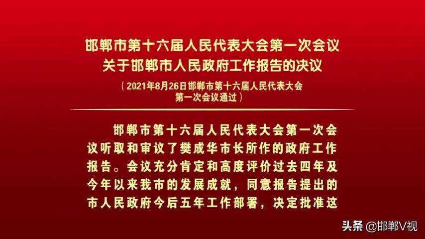 2、【直通两会】8月26日,邯郸市第十六届人民代表大会第一次会议通过了关于邯郸市人民政府工作报告的决议、关于邯郸市人民代表大会常务委员会工作报告的决议、关于邯郸市中级人民法院工作报告的决议、关于邯郸市人民检察院工作报告的决议;