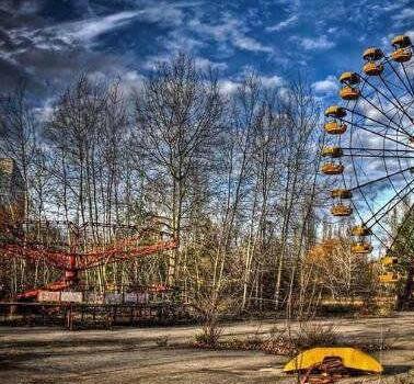 乌克兰,普里皮亚季(前苏联用于安置兴修切尔诺贝利核电站建筑工人及事务人员的城市)。这里有着前苏联第三大核电厂,但由于一次核泄漏,周围15公里人紧急疏散,现成无人区。