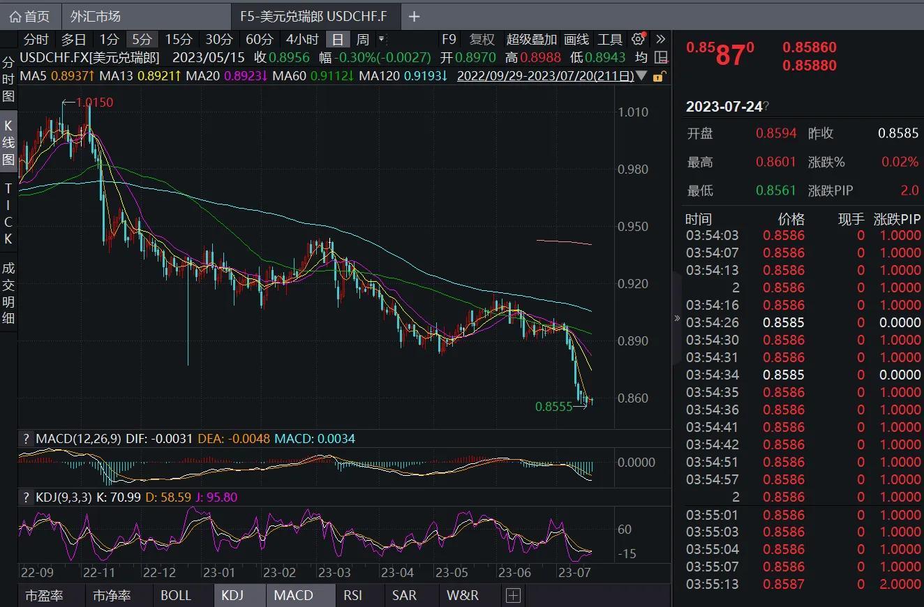 分析美元价格走弱的原因,美国通胀降温,美联储加息已近尾声的预期拖累美元表现,欧盟、英国等非美货币经济体加息预期仍然较为明确,导致美元兑非美货币持续下跌,影响了美元整体走势。今年以来,欧元兑美元EUR/USD、英镑兑美元GBU/USD、美元兑瑞郎USD/CHF汇率持续走高,各国货币紧缩政策原因影响了本轮货币汇率走势。