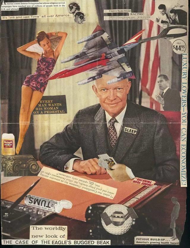 Collage (Includes images ofEisenhower, Nixon, bomber, etc.) by Sylvia Plath, 1960