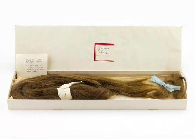 Sylvia Plath’s childhood ponytail withher mother’s inscription, August 1945