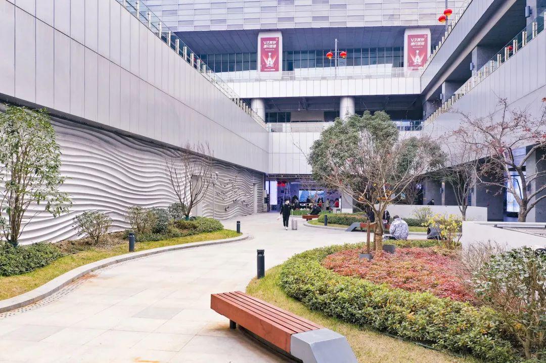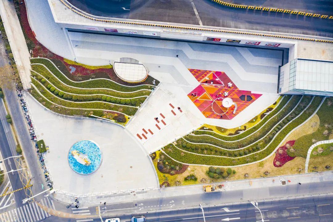 作为“外场上”的二层集散广场,由无锡市花杜鹃花构成的花形廊架放置在二层平台最显眼的位置,与无锡进站口交相辉映,把无锡与周边的城市紧紧联系起来,扮演着交通枢纽的重要角色。